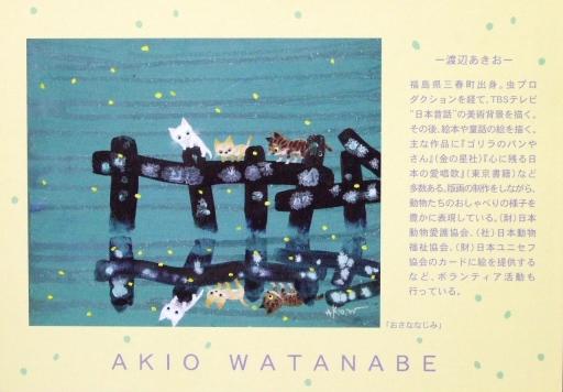 現在、猫の家(湘南ねこ美術館)[=猫美]で「渡辺あきお特別展」を開催中の渡辺あきおさんの作品展が1/12から同じ県内の横浜・上大岡にある京急百貨店で開催されます。 “渡辺あきお作品展”と題した今回の作品展では1/15(日)に渡辺さんも来館。当日は14:00~16:00の間、会場でサイン会も行われます。 《2/12から開催される"渡辺あきお作品展"の案内状》 《2/12から開催される"渡辺あきお作品展"の詳細》京急百貨店で開催される"渡辺あきお作品展"では、猫美で開催中の特別展とはまたひと味違った素敵な渡辺さんの作品に出会えることと思います。 猫の家(湘南ねこ美術館)ご案内猫の家(湘南ねこ美術館)=通称:猫美は、猫の絵と雑貨と本に囲まれた空間で、ご来館いただいたお客様方に少しでも癒しを感じていただければと思い、今にも猫が出てきそうな雰囲気のある昭和30年代の民家をリフォームして2007年4月にオープンした個人美術館です。館内には常時50点以上の美術館所蔵の猫の絵を展示している常設展示室、猫の絵本を中心に850冊を超える蔵書を落ち着いた雰囲気の中で自由にご覧になれる図書ルーム、一定期間様々な作家さんたちに猫の作品を出品していただき公開している特別展示室があるほか、美術館の1階には珍しい猫雑貨や作家さんたちのオリジナルグッズや作品などを販売しているミュジアムショップも併設しています。《親子連れでも楽しめる猫美・常設展示室の様子》《美術館のオープニングで看板を描く画家の渡辺あきおさん》《美術館の入口》◎1/10(土)~3/30(月)まで、2階特別展示室では「渡辺あきお特別展」を開催します◎温かみのある可愛い猫たちの絵で知られる人気画家、渡辺あきおさんが描いた代表作を含む猫の原画と版画を展示致しますので、ぜひご来館下さい。《「渡辺あきお特別展」の案内状》猫の家(湘南ねこ美術館)神奈川県三浦郡葉山町下山口1502電話:046-876-3468(開館日) 毎週土・日・月曜日 午前10~午後5時まで(入館は午後4時半まで) ※2月の開館日...1,2,7,8,9,14,15,16,21,22,23,28 3月の開館日...1,2,7,8,9,14,15,16,21,22,23,28,29,30 (3/30まで特別展示室では「渡辺あきお特別展」を開催中)(入館料) 大人350円,小中学生250円,シルバー(65才以上)300円,障害者手帳をお持ちの方300円(ご来館のアクセス)[電車・バスをご利用の場合]◎JR横須賀線「逗子駅」東口下車。駅前バスターミナルより 京急バス2番のりば...横須賀市民病院行き、長井行きなど全便乗車可。(約10分間隔) 京急バス3番のりば...海岸廻り葉山行き。(約10分間隔)◎京浜急行線「新逗子駅」南口下車。新逗子駅バス停より 京急バス1番のりば...横須賀市民病院行き、長井行きなど全便乗車可。(約10分間隔) 京急バス2番のりば...海岸廻り葉山行き。(約10分間隔)上記にて、京急バス「葉山」バス停下車。進行方向に徒歩約2分。[お車にてご来館の場合]当館は、葉山御用邸・葉山警察そばの国道134号線、道路沿いにございます。都心方面や遠隔地からお越しの方は、横浜横須賀道路の逗子インターか葉山・横須賀インターで降りてから、まずは葉山御用邸を目指していらっしゃって下さい。横浜・逗子方面からの場合は葉山御用邸を過ぎてすぐの短い坂道を登りきったところの左手に。逆に三崎・城ヶ島方面からの場合は長者ヶ崎の先にある葉山公園入口の信号の少し先の右手にございます。※駐車場:なし*近隣駐車場のご案内* 1.葉山公園(美術館より徒歩約3分)に30台の県営駐車場があります。 (4月~11月を除き無料) 4/1~ 6/30...土日祝:1日1回500円,平日:無料。 7/1~ 8/31...土日祝:1日1回2,000円,平日:1日1回1,500円。 9/1~11/30...土日祝:1日1回500円,平日:無料。 12/1~3/31...無料。 2.長者ヶ崎(美術館より徒歩約5分)に葉山町の町営駐車場と県営駐車場があります。 町営駐車場 (7月・8月を除き無料) 9/1~ 3/31...無料。 7/1~ 8/31...土日祝:1日1回2,000円,平日:1日1回1,500円。 県営駐車場 (有料) 通年...土日祝:1時間400円,平日:1時間300円。《"猫の家"近隣案内図》