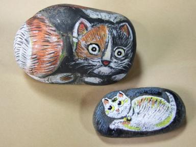 今日、実家の母親が実家の近くで開催されていたフリーマーケットで、石に猫をペイントした“猫石”を見つけて買って来てくれました♪ 母親の話によると“猫石”を作った人は一般の方のようですが、なかなか味のある作品に仕上がっているので、猫美の館内に展示してある作家さんたちの作品と一緒に置いてみようと思います。 《実家の母親がフリーマーケットで見つけて来てくれた“猫石”》 猫の家(湘南ねこ美術館)ご案内猫の家(湘南ねこ美術館)=通称:猫美は、猫の絵と雑貨と本に囲まれた空間で、ご来館いただいたお客様方に少しでも癒しを感じていただければと思い、今にも猫が出てきそうな雰囲気のある昭和30年代の民家をリフォームして2007年4月にオープンした個人美術館です。館内には常時50点以上の美術館所蔵の猫の絵を展示している常設展示室、猫の絵本を中心に850冊を超える蔵書を落ち着いた雰囲気の中で自由にご覧になれる図書ルーム、一定期間様々な作家さんたちに猫の作品を出品していただき公開している特別展示室があるほか、美術館の1階には珍しい猫雑貨や作家さんたちのオリジナルグッズや作品などを販売しているミュジアムショップも併設しています。《親子連れでも楽しめる猫美・常設展示室の様子》 《美術館の入口》◎5/30(土)~8/31(月)までは、猫美の特別展示室で「猫からの暑中見舞い 残暑見舞い展」を開催。13人の作家さんの23点の原画を展示。 《「猫からの暑中見舞い 残暑見舞い展」を開催中の特別展示室》猫の家(湘南ねこ美術館)神奈川県三浦郡葉山町下山口1502電話:046-876-3468(開館日) 毎週土・日・月曜日 午前10~午後5時まで(入館は午後4時半まで) ※6月の開館日...1,6,7,8,13,14,15,20,21,22,27,28,29 7月の開館日...4,5,6,11,12,13,18,19,20,25,26,27 (入館料) 大人350円,小中学生250円,シルバー(65才以上)300円,障害者手帳をお持ちの方300円(ご来館のアクセス)[電車・バスをご利用の場合]◎JR横須賀線「逗子駅」東口下車。駅前バスターミナルより 京急バス2番のりば...横須賀市民病院行き、長井行きなど全便乗車可。(約10分間隔) 京急バス3番のりば...海岸廻り葉山行き。(約10分間隔)◎京浜急行線「新逗子駅」南口下車。新逗子駅バス停より 京急バス1番のりば...横須賀市民病院行き、長井行きなど全便乗車可。(約10分間隔) 京急バス2番のりば...海岸廻り葉山行き。(約10分間隔)上記にて、京急バス「葉山」バス停下車。進行方向に徒歩約2分。[お車にてご来館の場合]当館は、葉山御用邸・葉山警察そばの国道134号線、道路沿いにございます。都心方面や遠隔地からお越しの方は、横浜横須賀道路の逗子インターか葉山・横須賀インターで降りてから、まずは葉山御用邸を目指していらっしゃって下さい。横浜・逗子方面からの場合は葉山御用邸を過ぎてすぐの短い坂道を登りきったところの左手に。逆に三崎・城ヶ島方面からの場合は長者ヶ崎の先にある葉山公園入口の信号の少し先の右手にございます。※駐車場:なし*近隣駐車場のご案内* 1.葉山公園(美術館より徒歩約3分)に30台の県営駐車場があります。 (4月~11月を除き無料) 4/1~ 6/30...土日祝:1日1回500円,平日:無料。 7/1~ 8/31...土日祝:1日1回2,000円,平日:1日1回1,500円。 9/1~11/30...土日祝:1日1回500円,平日:無料。 12/1~3/31...無料。 2.長者ヶ崎(美術館より徒歩約5分)に葉山町の町営駐車場と県営駐車場があります。 町営駐車場 (7月・8月を除き無料) 9/1~ 3/31...無料。 7/1~ 8/31...土日祝:1日1回2,000円,平日:1日1回1,500円。 県営駐車場 (有料) 通年...土日祝:1時間400円,平日:1時間300円。《"猫の家"近隣案内図》