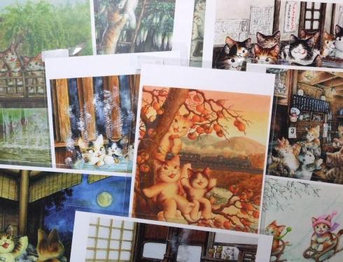 “にゃーにゃー村”でもお馴染みのおおやぎえいこさんが作ったポストカードが本日入荷しました! おおやぎさんは、現在開催中の「ねこたちのクリスマス展3」にもとても可愛い作品を2点出品してくださっているほか、猫の家(湘南ねこ美術館)[=通称:猫美]でも作品をコレクションさせていただいている作家さんです。 今回送っていただいたポストカードもどれも可愛いものばかり♪ おおやぎさんファンの方は勿論、はじめておおやぎさんの作品をご覧になる方もきっとひと目でおおやぎさんの描く可愛い猫たちの世界の虜になるのでは(?)と思います。 おおやぎさんのポストカードは今日(11/14)から猫美1階のミュージアムショップにてお取り扱いをしておりますので、猫美へご来館の際にはぜひ一枚一枚ご覧になってみて下さい。 《可愛さいっぱいのおおやぎえいこさんのポストカード》 猫の家(湘南ねこ美術館)ご案内猫の家(湘南ねこ美術館)=通称:猫美は、猫の絵と雑貨と本に囲まれた空間で、ご来館いただいたお客様方に少しでも癒しを感じていただければと思い、今にも猫が出てきそうな雰囲気のある昭和30年代の民家をリフォームして2007年4月にオープンした個人美術館です。館内には常時50点以上の美術館所蔵の猫の絵を展示している常設展示室、猫の絵本を中心に850冊を超える蔵書を落ち着いた雰囲気の中で自由にご覧になれる図書ルーム、一定期間様々な作家さんたちに猫の作品を出品していただき公開している特別展示室があるほか、美術館の1階には珍しい猫雑貨や作家さんたちのオリジナルグッズや作品などを販売しているミュジアムショップも併設しています。《親子連れでも楽しめる猫美・常設展示室の様子》 《美術館の入口》 ◎11/7(土)~12/28(月)までは、毎年大好評をいただいている「ねこたちのクリスマス展」の第3弾!「ねこたちのクリスマス展3」を開催。今年は16人の作家さんによる原画23枚を展示。合わせて常設展示室に於いてもクリスマスにちなんだ絵・本・雑貨を多数展示致します。 《「ねこたちのクリスマス展3」の案内状》 猫の家(湘南ねこ美術館)神奈川県三浦郡葉山町下山口1502電話:046-876-3468(開館日) 毎週土・日・月曜日 午前10~午後5時まで(入館は午後4時半まで) ※11月の開館日...1,2,7,8,9,14,15,16,21,22,23,28,29,30 12月の開館日...5,6,7,12,13,14,19,20,21,26,27,28 (入館料)大人350円,小中学生250円,シルバー(65才以上)300円,障害者手帳をお持ちの方300円(ご来館のアクセス)[電車・バスをご利用の場合]◎JR横須賀線「逗子駅」東口下車。駅前バスターミナルより 京急バス2番のりば...横須賀市民病院行き、長井行きなど全便乗車可。(約10分間隔) 京急バス3番のりば...海岸廻り葉山行き。(約10分間隔)◎京浜急行線「新逗子駅」南口下車。新逗子駅バス停より 京急バス1番のりば...横須賀市民病院行き、長井行きなど全便乗車可。(約10分間隔) 京急バス2番のりば...海岸廻り葉山行き。(約10分間隔)上記にて、京急バス「葉山」バス停下車。進行方向に徒歩約2分。[お車にてご来館の場合]当館は、葉山御用邸・葉山警察そばの国道134号線、道路沿いにございます。都心方面や遠隔地からお越しの方は、横浜横須賀道路の逗子インターか葉山・横須賀インターで降りてから、まずは葉山御用邸を目指していらっしゃって下さい。横浜・逗子方面からの場合は葉山御用邸を過ぎてすぐの短い坂道を登りきったところの左手に。逆に三崎・城ヶ島方面からの場合は長者ヶ崎の先にある葉山公園入口の信号の少し先の右手にございます。※駐車場:なし*近隣駐車場のご案内* 1.葉山公園(美術館より徒歩約3分)に30台の県営駐車場があります。 (4月~11月を除き無料) 4/1~ 6/30...土日祝:1日1回500円,平日:無料。 7/1~ 8/31...土日祝:1日1回2,000円,平日:1日1回1,500円。 9/1~11/30...土日祝:1日1回500円,平日:無料。 12/1~3/31...無料。 2.長者ヶ崎(美術館より徒歩約5分)に葉山町の町営駐車場と県営駐車場があります。 町営駐車場 (7月・8月を除き無料) 9/1~ 3/31...無料。 7/1~ 8/31...土日祝:1日1回2,000円,平日:1日1回1,500円。 県営駐車場 (有料) 通年...土日祝:1時間400円,平日:1時間300円。《"猫の家"近隣案内図》