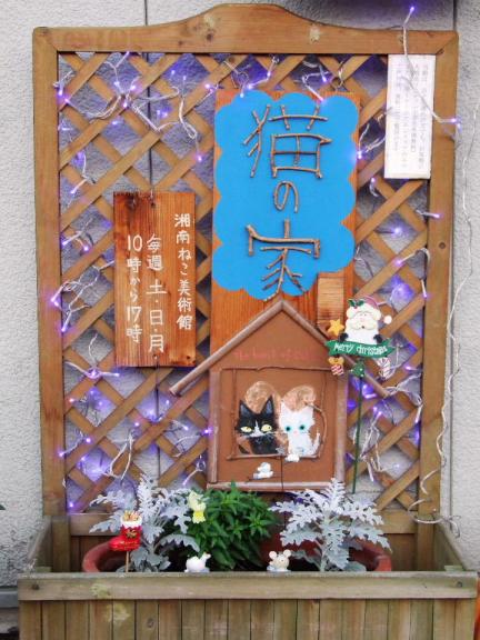 昨日(11/7)より猫の家(湘南ねこ美術館)[=通称:猫美]にて始まった「ねこたちのクリスマス展3」では、今年からイルミネーションもグレードアップ! 昨年までのものに加え、新たにトナカイやLEDの照明も登場! よりクリスマスらしさを醸し出しています。 《LEDのライトを点滅させる猫美の看板》 《玄関を入ってすぐ横ではLEDで輝くクリスマスツリーが…》 《受付横では新たに加わったトナカイとのっぽのサンタさんがお出迎え》 猫の家(湘南ねこ美術館)ご案内猫の家(湘南ねこ美術館)=通称:猫美は、猫の絵と雑貨と本に囲まれた空間で、ご来館いただいたお客様方に少しでも癒しを感じていただければと思い、今にも猫が出てきそうな雰囲気のある昭和30年代の民家をリフォームして2007年4月にオープンした個人美術館です。館内には常時50点以上の美術館所蔵の猫の絵を展示している常設展示室、猫の絵本を中心に850冊を超える蔵書を落ち着いた雰囲気の中で自由にご覧になれる図書ルーム、一定期間様々な作家さんたちに猫の作品を出品していただき公開している特別展示室があるほか、美術館の1階には珍しい猫雑貨や作家さんたちのオリジナルグッズや作品などを販売しているミュジアムショップも併設しています。《親子連れでも楽しめる猫美・常設展示室の様子》 《美術館の入口》 ◎11/7(土)~12/28(月)までは、毎年大好評をいただいている「ねこたちのクリスマス展」の第3弾!「ねこたちのクリスマス展3」を開催。今年は16人の作家さんによる原画23枚を展示。合わせて常設展示室に於いてもクリスマスにちなんだ絵・本・雑貨を多数展示致します。 《「ねこたちのクリスマス展3」の案内状》 猫の家(湘南ねこ美術館)神奈川県三浦郡葉山町下山口1502電話:046-876-3468(開館日) 毎週土・日・月曜日 午前10~午後5時まで(入館は午後4時半まで) ※11月の開館日...1,2,7,8,9,14,15,16,21,22,23,28,29,30 12月の開館日...5,6,7,12,13,14,19,20,21,26,27,28 (入館料)大人350円,小中学生250円,シルバー(65才以上)300円,障害者手帳をお持ちの方300円(ご来館のアクセス)[電車・バスをご利用の場合]◎JR横須賀線「逗子駅」東口下車。駅前バスターミナルより 京急バス2番のりば...横須賀市民病院行き、長井行きなど全便乗車可。(約10分間隔) 京急バス3番のりば...海岸廻り葉山行き。(約10分間隔)◎京浜急行線「新逗子駅」南口下車。新逗子駅バス停より 京急バス1番のりば...横須賀市民病院行き、長井行きなど全便乗車可。(約10分間隔) 京急バス2番のりば...海岸廻り葉山行き。(約10分間隔)上記にて、京急バス「葉山」バス停下車。進行方向に徒歩約2分。[お車にてご来館の場合]当館は、葉山御用邸・葉山警察そばの国道134号線、道路沿いにございます。都心方面や遠隔地からお越しの方は、横浜横須賀道路の逗子インターか葉山・横須賀インターで降りてから、まずは葉山御用邸を目指していらっしゃって下さい。横浜・逗子方面からの場合は葉山御用邸を過ぎてすぐの短い坂道を登りきったところの左手に。逆に三崎・城ヶ島方面からの場合は長者ヶ崎の先にある葉山公園入口の信号の少し先の右手にございます。※駐車場:なし*近隣駐車場のご案内* 1.葉山公園(美術館より徒歩約3分)に30台の県営駐車場があります。 (4月~11月を除き無料) 4/1~ 6/30...土日祝:1日1回500円,平日:無料。 7/1~ 8/31...土日祝:1日1回2,000円,平日:1日1回1,500円。 9/1~11/30...土日祝:1日1回500円,平日:無料。 12/1~3/31...無料。 2.長者ヶ崎(美術館より徒歩約5分)に葉山町の町営駐車場と県営駐車場があります。 町営駐車場 (7月・8月を除き無料) 9/1~ 3/31...無料。 7/1~ 8/31...土日祝:1日1回2,000円,平日:1日1回1,500円。 県営駐車場 (有料) 通年...土日祝:1時間400円,平日:1時間300円。《"猫の家"近隣案内図》