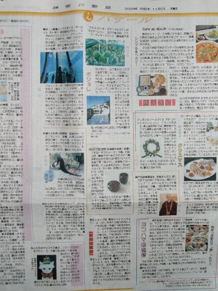 昨日(11/5)付の神奈川新聞で明日(11/7)から猫の家(湘南ねこ美術館)[=通称:猫美]2階の特別展示室で開催する「ねこたちのクリスマス展3」についての記事が掲載されました♪ 掲載されたのは、11/5付・神奈川新聞の13面にある情報バザールのコーナー。 《「ねこたちのクリスマス展3」の記事が掲載された11/5付の神奈川新聞の紙面》 今回は猫美の案内状にもなっている多田すみえさんが描いた“クリスマス子猫ちゃん”の絵がカラーで掲載されていて、とても素敵な記事になっています♪ 《11/5付の神奈川新聞に掲載された「ねこたちのクリスマス展3」の記事》 「ねこたちのクリスマス展3」もいよいよ明日から! 今年のクリスマス展もご来館いただいたお客様お一人お一人に楽しんでいただけるような素敵な展示にしたいと思っています。 猫の家(湘南ねこ美術館)ご案内猫の家(湘南ねこ美術館)=通称:猫美は、猫の絵と雑貨と本に囲まれた空間で、ご来館いただいたお客様方に少しでも癒しを感じていただければと思い、今にも猫が出てきそうな雰囲気のある昭和30年代の民家をリフォームして2007年4月にオープンした個人美術館です。館内には常時50点以上の美術館所蔵の猫の絵を展示している常設展示室、猫の絵本を中心に850冊を超える蔵書を落ち着いた雰囲気の中で自由にご覧になれる図書ルーム、一定期間様々な作家さんたちに猫の作品を出品していただき公開している特別展示室があるほか、美術館の1階には珍しい猫雑貨や作家さんたちのオリジナルグッズや作品などを販売しているミュジアムショップも併設しています。《親子連れでも楽しめる猫美・常設展示室の様子》 《美術館の入口》 ◎11/7(土)~12/28(月)までは、毎年大好評をいただいている「ねこたちのクリスマス展」の第3弾!「ねこたちのクリスマス展3」を開催。今年は16人の作家さんによる原画22枚(←ニャーニャーの語呂合わせ?)を展示。合わせて常設展示室に於いてもクリスマスにちなんだ絵・本・雑貨を多数展示致します。 《「ねこたちのクリスマス展3」の案内状》 猫の家(湘南ねこ美術館)神奈川県三浦郡葉山町下山口1502電話:046-876-3468(開館日) 毎週土・日・月曜日 午前10~午後5時まで(入館は午後4時半まで) ※11月の開館日...1,2,7,8,9,14,15,16,21,22,23,28,29,30 12月の開館日...5,6,7,12,13,14,19,20,21,26,27,28 (入館料)大人350円,小中学生250円,シルバー(65才以上)300円,障害者手帳をお持ちの方300円(ご来館のアクセス)[電車・バスをご利用の場合]◎JR横須賀線「逗子駅」東口下車。駅前バスターミナルより 京急バス2番のりば...横須賀市民病院行き、長井行きなど全便乗車可。(約10分間隔) 京急バス3番のりば...海岸廻り葉山行き。(約10分間隔)◎京浜急行線「新逗子駅」南口下車。新逗子駅バス停より 京急バス1番のりば...横須賀市民病院行き、長井行きなど全便乗車可。(約10分間隔) 京急バス2番のりば...海岸廻り葉山行き。(約10分間隔)上記にて、京急バス「葉山」バス停下車。進行方向に徒歩約2分。[お車にてご来館の場合]当館は、葉山御用邸・葉山警察そばの国道134号線、道路沿いにございます。都心方面や遠隔地からお越しの方は、横浜横須賀道路の逗子インターか葉山・横須賀インターで降りてから、まずは葉山御用邸を目指していらっしゃって下さい。横浜・逗子方面からの場合は葉山御用邸を過ぎてすぐの短い坂道を登りきったところの左手に。逆に三崎・城ヶ島方面からの場合は長者ヶ崎の先にある葉山公園入口の信号の少し先の右手にございます。※駐車場:なし*近隣駐車場のご案内* 1.葉山公園(美術館より徒歩約3分)に30台の県営駐車場があります。 (4月~11月を除き無料) 4/1~ 6/30...土日祝:1日1回500円,平日:無料。 7/1~ 8/31...土日祝:1日1回2,000円,平日:1日1回1,500円。 9/1~11/30...土日祝:1日1回500円,平日:無料。 12/1~3/31...無料。 2.長者ヶ崎(美術館より徒歩約5分)に葉山町の町営駐車場と県営駐車場があります。 町営駐車場 (7月・8月を除き無料) 9/1~ 3/31...無料。 7/1~ 8/31...土日祝:1日1回2,000円,平日:1日1回1,500円。 県営駐車場 (有料) 通年...土日祝:1時間400円,平日:1時間300円。《"猫の家"近隣案内図》