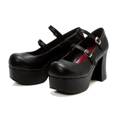 ユメテンボウ 夢展望 Wストラップロリータパンプス (ブラックスムース)