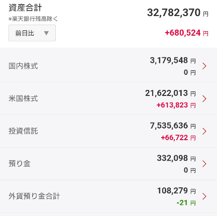 今週末の資産状況です。