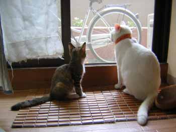 取り合えず名無しもなんなので仮に”コーニャ”という名前をつけました、こねこ>コニャー>コーニャという安易な感じです、候補で”稲荷”というのも捨てがたいです。。我が家の在家(?)ねこたちは、3・4日はビビって、威嚇したり逃げたりしていましたが、器量よしのコーニャを前に、だんだんと打ち解けてきました!センキャンが遊び相手担当になって遊んでくれています、元祖新ねこ担当のマメも頑張っています!平和でなかなか事件はおこりませんでした!!でも平和が一番ですね!