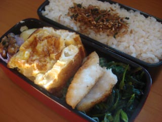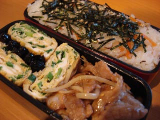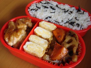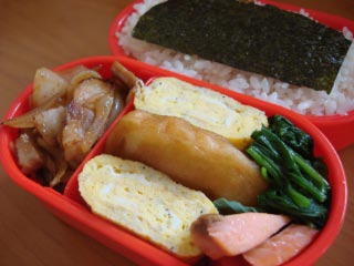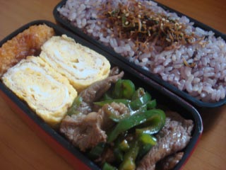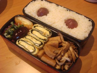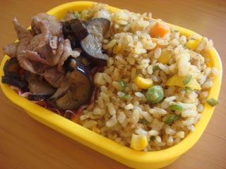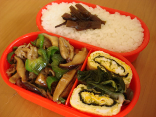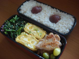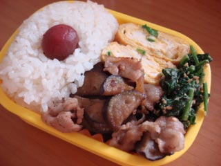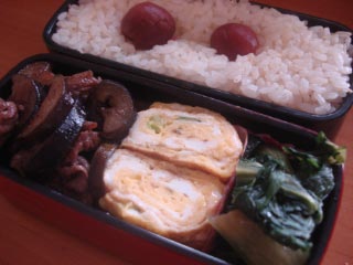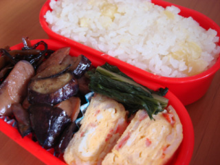 ・ねぎ入り卵焼き・高菜の漬物・なすと牛肉の甘辛炒め今日はご飯を冷ます時間がほとんどなかったので、腐らないとは思うけど一応梅干にしておきました。この牛肉ちょっと固い・・。