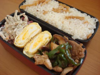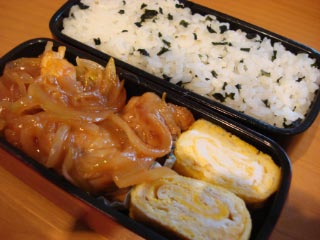 ・わかめごはん・卵焼き・鶏肉と玉ねぎの甘酢炒め鶏肉と玉ねぎは何で味付けしようと思いながら炒め、酢豚系にしてみましたがちょっと違ったかな。なんだかすごくシンプルでごめんね。