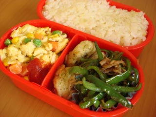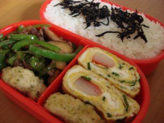 ・ピーマンとじゃこ炒め・チキンナゲット・ミックスベジタブル入り卵焼きピーマンとじゃこ炒めはちょっと多いかなというくらい作ったのですが、そういむさんのお弁当と、わたしとちびちゃんであっという間になくなりました。みんなピーマン好き。