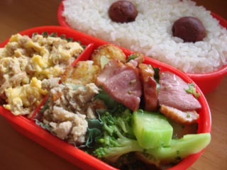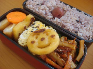 ・稲荷揚げの卵とじ・ブロッコリーとハムの中華炒め・おから・ポテト・梅漬けまた隙間が開いたのでポテトを詰めてしまった。頂き物の梅漬けはちびちゃんも「すっぱいすっぱい」と言いながら食べました。確かにすっぱい。