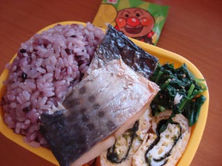 ・焼きさば・卵焼き・ほうれん草の胡麻和え初めて黒米を使ってみました。少量ですごい色がつくので炊飯器をあけてびっくり。ちびちゃんが焼魚大好きでパクパク食べるので、今後も我が家の食卓には焼魚が頻繁に登場することでしょう。そういむさんの好きなお肉はあとまわし。