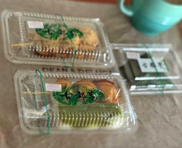 エキュート品川にある和菓子屋さん「ふるや古賀音庵」の和菓子です。消費期限は当日のみのお団子です。種類はみたらし、黒胡麻和三盆、ずんだ、大納言(あずき)があったそうです。夫はみたらしを選びました。5本で1000円ぐらい(またレシートを貰わなかったようです)。おだんごがお餅のように柔らかめで、みたらし餡がたっぷりついて醤油の風味がはっきりし、甘味もあって美味しいです。関西のみたらしだんごとはまた少し違う風味の醤油味で、新鮮でした。次回はお店の看板商品、黒胡麻を食べてみたいと思います。