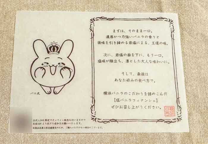 丸い形のフィナンシェです。なんとなくバニ丸のシルエットに寄せたのかなと思いました