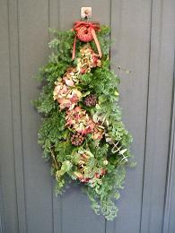 スギ。。ドライの大好きな秋アジサイ。。ベランダにあるプミラのツルと葉。。。。。 。。。。。アイビーの葉。。リボンレイのクリスマスバージョン