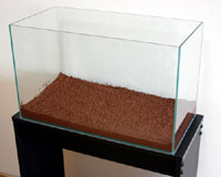設置場所の確保ができたら、水槽をセットします。水槽サイズや各アイテムのメーカー、タイプが違っても基本的なことに変わりはありません。他のサイズの水槽を選択しても、十分に応用が利きますので、自分の購入予定の水槽に置き換えて読んで下さい。●器具類を水洗い水槽内部や各器具には、出荷時に何らかの薬品や流通過程で付着した汚れがついているため、それらを水道水で洗い流します。特に洗剤をつける必要はありませんが、もし使うのであれば台所用の中性洗剤を用い、洗浄後は洗剤が残らないようによく濯いでください。お風呂場に移動して洗えれば最適ですが、移動が難しければ水槽に少量の水を入れ、濡らした雑巾で内部を擦るように洗い、最後に水をふき取ってしまってもOKです。●砂利を洗う今回、使用するのは、セラミックを焼成してつくられた砂利を12kg使用しました。水質への影響がほとんどなく、洗浄時に微塵が殆どでないため、水を換えながら数回とぎ洗いすれば利用できるのでお勧めです。砂利の種類に拠っては、いつまでも汚れの取れないものや洗浄が不可な種類もあるため、説明書きをよく読み、販売店にて詳細を確認の上で購入してください。砂利には、インテリア的な要素もありますが、魚を落ち着かせる効果や水を綺麗にするバクテリアの住処、また水草を植えるためにも必須です。●バックスクリーン必ずしも必要なアイテムではありませんが、水槽背面外側にバックスクリーンを貼ると、魚や水草が引きたち効果的です。そのままでは、後ろの壁が見えてしまい、また器具類の配線なども丸見えのため美観的に宜しくありません。黒いタイプが最も一般的ですが、青色、水草レイアウトやイラストがプリントされたものなど、様々なタイプが販売されています。水槽内を、すっきりみせる為にバックスクリーンを貼った方が無難ですが、飼育そのものに影響はありませんのでお好みでどうぞ。Note!pHや硬度などを変化させ、水質に影響を及ばす砂利もありますので、購入前に販売店で確認の上、選択してください。pH(ペーハー)や硬度(KH、GH)に影響を及ぼす砂利は、その後の管理が難しくなり、藻類(こけ)の大発生を招いたり、飼育する魚にとって不適切な水質へと変化させてしまうものもあります。見た目や値段だけに捕らわれず、性質を理解して選択してください。