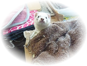 フェレっ子は、もぐるの大好きですよね~♪う~りん家でも、服の中にもぐったり…タオルの中にもぐったり…ちなみに…今は…このあたり…☆