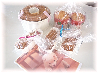 すっごぃお久しぶりの日記更新です(^^ゞ皆さん、お元気でしょぅか??う~りんは元気にしてぃます☆もちろん、桃(ぴーち)も栗(まろん)も元気にしてますよぉ♪今日は、12月31日、大晦日ですね~ぃょぃょあと数時間で2009年も終わっちゃぃますね~☆大掃除やお正月の準備も一段落してやっとひと息してぃます(^_^;)今夜は実家に来てぃる、う~りんです♪あとは…年越し蕎麦を食べて完了??(笑)先日、とてもうれしぃ贈り物が届きました☆楽天広場で仲良くさせてぃただぃてぃるシフォンぱんださん☆からの贈り物です♪シフォンぱんださんは、手作りお菓子の名人さんでぃっもブログにたくさんの手作りお菓子を載せてみえてとても女性らしぃ雰囲気の方なんだろうなぁ~とぃぅ印象の方です♪可愛らしぃ愛犬コタロウちゃんのご主人様でもあります☆そんなシフォンぱんださんが作られてぃるお菓子を…「食べたいでーす!!」とリクエストしてぃましたら今回、得意のシフォンケーキを始め、こんなに美味しそぅな手作りお菓子を贈ってくれましたぁ~(●^o^●)可愛ぃ便箋のお手紙も添えられてぃます☆「ありがとぅござぃますぅ~シフォンぱんださぁ~ん」丁寧にラッピングされてぃて、見た目はまるで、有名お菓子店のお菓子みたぃです♪♪こちらは、シフォンぱんださんお得意の絶品…こちらは…ラッピングを開けた途端にバナナの美味しそぅな香りが…こちらは…ドライフルーツが楽しめますぅ~…開けた途端、まずはちょっとだけ…と思ぃつつ、つまんだら…止まらなくなってしまった、う~りんです(笑)すっごくしっとりとしてぃて、食感がとってもぃぃんです!!それに、とってもぃぃ香りして、上品な味が楽しめますぅ~☆手作りでこんなに味と香りが凝縮したものが作れるなんてさすがシフォンぱんださん!!ですぅ~(@_@;)スゴイスゴイう~りんには…真似できにゃぃ~汗シフォンぱんださんの日記で勉強しなくちゃですぅ(^^ゞ「ごちそぅさまですぅ~☆シフォンぱんださん☆」紅茶の勉強も再開される予定もあるシフォンぱんださん…お身体に気を付けて、がんばってね~♪♪次の作品も楽しみにしてぃますぅ♪☆♪