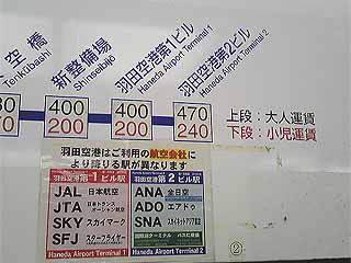 天王洲アイル駅からのモノレール:東京にいてもほとんど関心のないネタですが...羽田空港へのアクセスといえば東京モノレールですが、浜松町からの接続ではターミナル1,2で運賃が異なることがありませんが、途中の天王洲アイル(りんかい線との接続駅)からだと値段が70円も異なります!機械的に距離の差で決まっているのでしょうけど、目的地が空港という機能にあるのであれば、特例にしてでも普通は変えませんよねぇ?もしかして天王洲アイルがJALの本拠地(本社)があるからターミナル1が特例??かと疑いたくなります!?