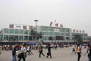 <4月26日(土) part4>広州駅(广州火車站):広州駅は広州の玄関口として、国内方面の長距離列車が発着しています。一方で、地方からの上京が多く治安が悪い、と言われていていますが、少なくとも昼間は上野駅的な情緒があります。(実際は人が多くザワザワしているのですが...)駅全景駅前は荷物を抱えた人々でいっぱいです広州東駅(广州東火車站):広州駅に対して深センや香港への列車が発着するは広州東駅に集約(一部は広州東駅を経由する広州駅発着)されており、深セン=広州(広深鉄道)を時速200km/hで10~15分毎に出発しているCRH(和階号)が約1時間で結びます。この駅周辺はビジネス街で広州駅とは一線を画しています。さしずめ新都心です。駅を背にすると駅前に公園が拡がり、その先に中信タワー(高さ391m)、そして左右対称にビルが林立しています。味千拉麺(味千ラーメン):味千ラーメンと言えば熊本のチェーンラーメン店というイメージですが、海外戦略の中で中国にも出店しています。広州東駅前の天河路雄成商業広場に出店していました。メニューはラーメンの他に、寿司や一品料理もあり居酒屋のような感じで、お客さんには欧米人の親子連れも多く、外資系のオフィスが多い天河地区を象徴しているようでした。写真は味千ラーメンです。味は普通にラーメンでした(汗)。味千チャーシュー麺20元