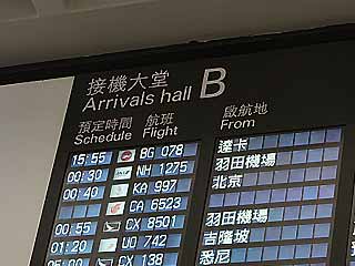<4月4日(金) part3>空港到着:正しくは日付が変わって4月5日になっています。到着は00:30着予定ですが、この日は向かい風が強く対地速度が670km/hとのことで、香港程度の距離なのに到着が30分程度の遅れとなりました。出発地が「羽田機場」になっていますしかし、到着便が少ないこの時間帯は、入国審査は列並び無しで、ボーディングブリッジから到着ロビーまでわずか15分でした。そして、深夜はN系統のバスが九龍や香港島方面にバスが運転されているので、主要ホテルまでの便は悪くありません。※ただし、バス停のアナウンスがないので、だいたいの場所を気にしている必要があります。