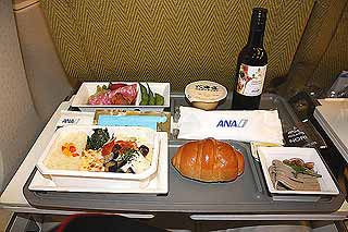 <4月9日(水) part2>機内食・JL48 Y NRT→JFK:通常ならば出発後1時間で提供される機内食。しかしこの便では日本を出てから3時間程度は気流が悪く、ベルト着用サインも消されないとのこと。搭乗口ではアナウンスしていたようですが、ラウンジにいたことで聞いなかったため、おあずけ状態!(こんな事ならばラウンジでおにぎりを食べておくべきだった!)と言うことで、日本出発後3時間半後にやっと機内食になります。機内食・JL48 Y NRT→JFK 2008.Apr.9<お食事>若鶏の赤ワインソース(ロール&バター)生ハムビアソーセージポテトサラダフレッシュ サラダオニオン ドレッシングパンナコッタ