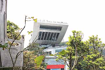 <4月5日(土) part2>ビクトリアピーク:お約束の観光スポット「ビクトリアピーク」です。ここ10年くらいの間に山頂が整備され、新たに展望できるようにトラム駅が整備されました。屋上展望台が突き出した形のピークトラム駅兼 Peak Tower湾を望む観光客は世界共通有料望遠鏡は「おつりでる」そうです(笑)炮台里(Battery Path):ピークトラムで下りてきて、麓駅から街中の手前に横道に逸れると小道があります。直ぐ下の道には車が行き来していますが、ここは散歩に適したのんびりした時間が流れます。公園のようになっています終審法院周辺地図は広東語・英語・日本語の併記に統一されていて日本人には優しい観光地です。