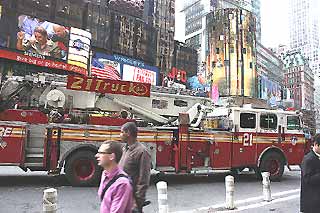<4月11日(金) part1>ボヤ騒ぎ:タイムズスクエアでボヤ騒ぎ、消防車が集まっていました。さらにそれを写真に撮る観光客も多く...自由の女神~リバティ島(Statue of Liberty):NYの象徴、自由の女神のあるリバティ島へはバッテリーパークにある埠頭からフェリーで渡ることが出来ます。このフェリーはリバティ島~エリス島を経由して戻る運航です。フェリーは所要時間15分、チケットは往復$12。チケットはネット予約できる事前予約(Reserve Ticket)と当日券(Flex Ticket、時間指定無し)があります。時期にもよりますがおよそ30~45分間隔で就航しているので、当日券だと3時間並ぶのはざら。実際、前回は昼に到着した時点で既に当日分終了でした。今回も10時に到着してフェリーに乗ったのは12時半でした。行列も楽しみましょう!まずは、フェリーがマンハッタンを離れると背景に写真を撮ります(当たり前の行動!?です)ビルをバックに次第にリバティー島に近づくと自由の女神を左背後から前に回り込むように埠頭に着きます。今度は前方方向をバックに写真を!島に上がると、まずは背後を見ることになります。台座まで上がることの出来るチケット(Monument Pass)があれば、この下の入口から入ります。背中取り囲むように島には歩道が整備されています。天気が悪くなり、ビル群も霞んできました最後に自由の女神を下から見上げます。Statue of Liberty & Ellis Island・Reserve Ticket・Flex Ticket・Monument PassTicket Adults $12(Reserve,Monument Pass or Flex)HP:http://www.statuecruises.com/Googleマップリンク・Liberty Island