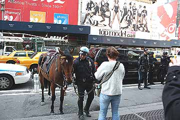 <4月10日(木) part1>ニューヨーク市警の騎馬隊:ニューヨーク市警では騎馬隊の活動要綱の中に「警察官の存在を周囲に知らせる」旨の効用が記されているそうで、タイムズスクエア周辺ではほとんど1日中活動中の隊員を見かけました。通常のパトカーよりも視線が高い馬体の背中に堂々と座っている警察官の姿は雑踏の中にあっても一際目立ちます。ちなみにこの周辺では馬車も営業していて、市内には営業認可された馬車68台、馬220頭がいるそうです。写真にも応じていますMusic Under New York:地下鉄ミュージシャンにはMUNY(Music Under New York)というライセンスが必要です。このライセンス取得にはオーディションがあり、交付されるとネーム入りの横断幕を持つことが出来るそうです。これもステイタスとなってしまい、本当に良い音楽とは?ということもあるようですが、それでも「正規営業」なんです!Ebony Hillbilliesこの Ebony Hillbillies についても、交通局のHPで紹介されています。HP:http://www.mta.info/