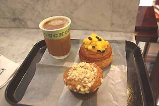 <4月13日(日) part1>ブションベーカリー(Bouchon Bakery)のマフィン:NYの朝食はマフィン!ブションベーカリー(Bouchon Bakery)はナパ・バレー、ラスベガス、そしてNYに展開するベーカリーです。NYはコロンバスサークル(Columbus Circle)のワーナーセンター(Time Warner Center)3Fにあります。サーブしてもらえるカフェもありますが、今回はベーカリーコーナーでマフィンを買って、その前にあるイートコーナーで頂きます。ただ甘いだけでなく「味」のある甘さで、ペロッと食べられます。日曜の朝ですが、軽く行列になっていました。定番のBanana Nut Muffin売店ですBouchon Bakery and Cafe in New YorkTime Warner Center, Third FloorHP:http://www.bouchonbakery.com/Googleマップリンク・Time Warner Centerニューヨーク近代美術館(The Museum of Modern Art):美術の教科書に掲載される絵画の”本物”が間近に見られる美術館、と前回の訪問の際には感動しました。さらに、リニューアルして展示面積も拡大し1日たっぷり楽しめますが、忙しく半日で廻りました。もっとゆっくり廻りたいところです。エントランス日本語表記は当たりまえ?最初のロビー。カラーが鮮やかMoMA The Museum of Modern Art11 W 53rd St. NYHP:http://www.moma.org/Googleマップリンク・Museum of Modern Art定番の五番街:NYの昼の繁華街は五番街です。ここだけでも見どころですが、通過したのみでした。