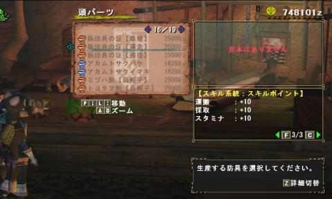 肉焼き名人付きの、料理人採集装備も飽きてきたナ~というわけで、団長がさっちんに教わって作っていた採集装備をマネしてみました。とはいえ、クレストForアミーゴF&SP3か所&スロット2の装備なんでもという自由度の高い組み合わせなので、バリエーションはいろいろになると思われます。珠は、報珠×1 宝珠×2 快足珠SP×1 釣力珠SP×1 強精珠SP×1 です。スキルは、高速剥ぎ取り&採取/激運/採取+2/自動マーキング/広域化+1/釣り名人/運搬の達人女神の赦し/ランナー となります。アビさんは、剣士とガンナーで替えるのがめんどかったので、兼用のやつを選んで作成。まぁでも、どっちみち頭はクレストかアミーゴで兼用だし、SP3こと、あと1こはテキトーでいいから、剣士用とガンナー用を作ってもそんなに手間じゃないと思うので、2種類作って、見た目の違いを楽しむのもいいですね。