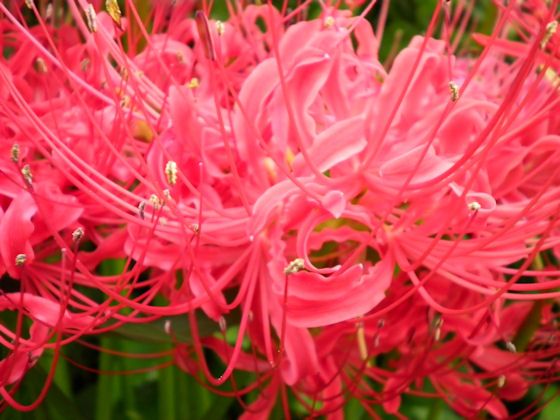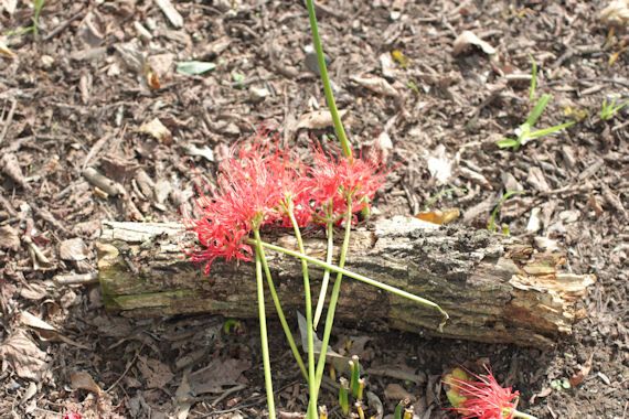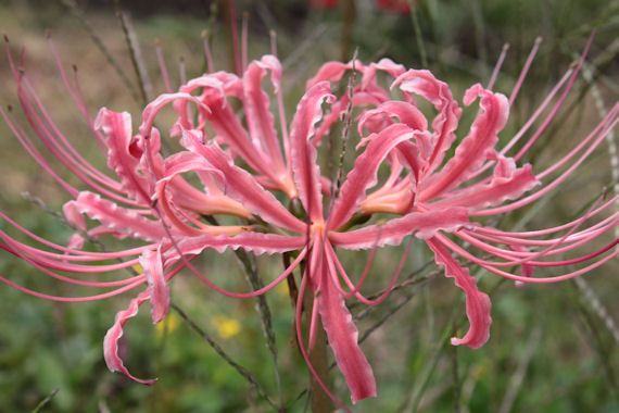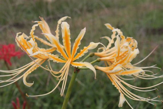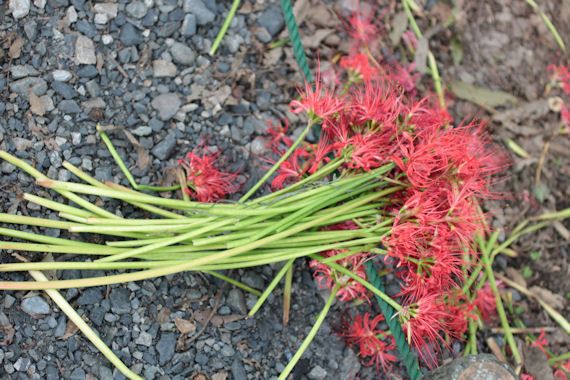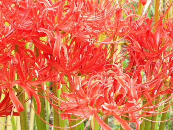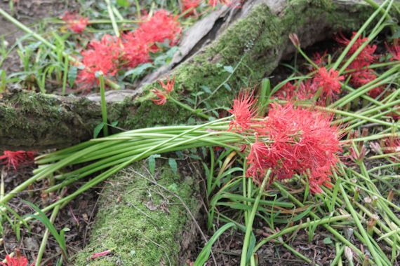 現地へ行ってみると、なんと、花が咲いてる状態のヒガンバナが、