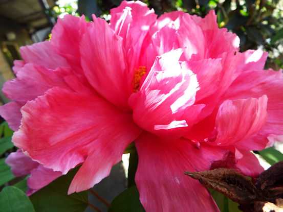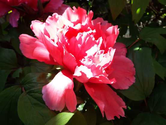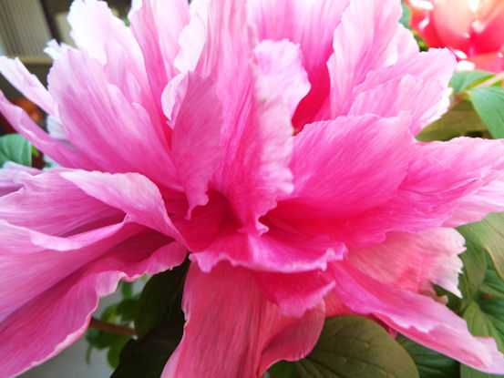 隣の部屋の前に植えられた、紅色の牡丹が、例年通り