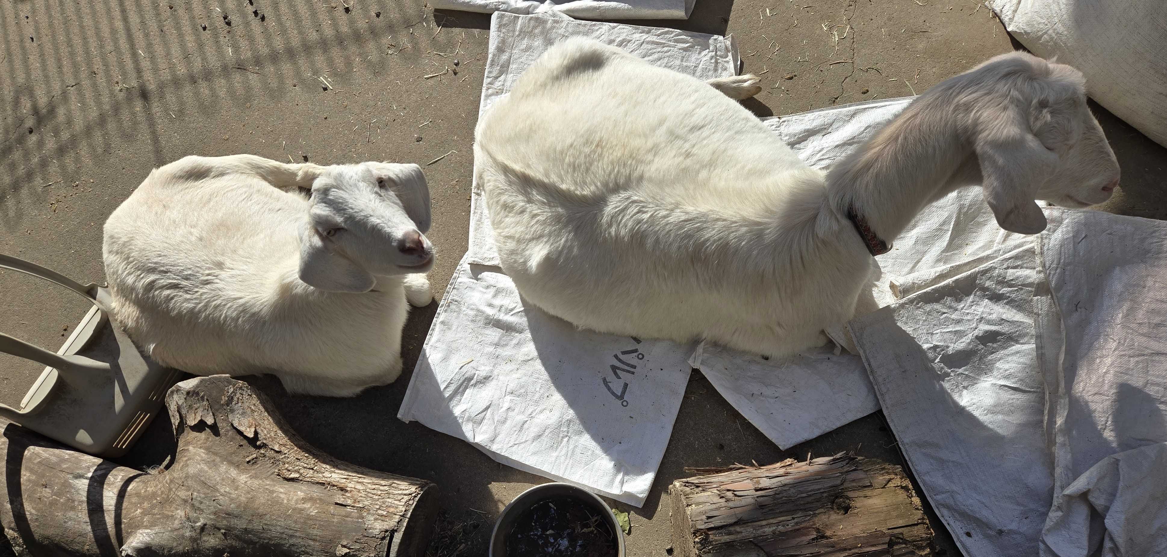 朝、窓を開けたらヤギたちは自分で飼料袋を敷物にして日光浴してました。にほんブログ村