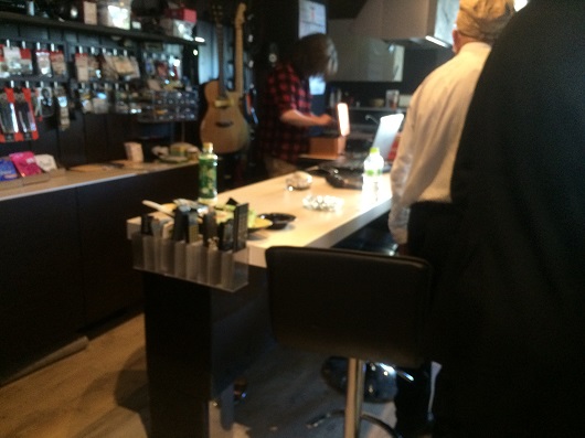 昨日のライブ画像でした(^_-)-☆ 集合は現地『JIVE』に16時。。。会場では既にリハーサルのようなもの?が始まってましたね~(#^.^#) 椅子に座ったままボーっとしてましたらスイマがそして何度も落っこちそうに・・・17時を過ぎた頃でしょうか・・・?ライブがスタートしました『みどる亭』ですいつもの様に普段のごとくです・・・(-_-)zzzいつものごとく一発本番!! 適度な暗さが誘います・・・ 決して不機嫌な訳ではございませんん~慣れないアンプのセッティングにチョット戸惑ったかなぁ~ 動かナイト・・・フリーズしてしまいそう・・・(-_-;) アドリブ注入(笑)・・・いつもと違う最初のフレーズでそのままいっちゃいました~頭に浮かんだ感じがそのまま音に出ちゃいます・・・ん~思考停止に近いかも?! そして、、ブルースで唸り声をあげるベースのジミーちゃんでしたぁ~(@_@;)怒ってるみたい・・・(-_-;)ヒートアップ!汗だくでしたぁ~!(^^)! 蹴りのハイッタ旨さです そして無事終了!皆様に感謝です(#^.^#)やはり寝不足はキツイですね~思考回路がショート気味でした 若いころと違い、48時間がタイムリミットですわ・・・立ったまま気絶爆睡しそう・・・さて、来週は何処にキャンプにいきましょうか?(^^ゞ やはりまだ足りない様です・・・(-_-)zzz 何故寝不足なのか?・・・それは昨日の通り・・・チョット食べ過ぎただけで~す