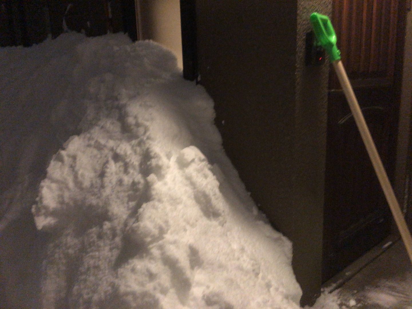 自宅🏠は玄関のドア🚪迄、、雪が押し寄せてました(//∇//)、、、捨てる場所も無い感じ(-。-;