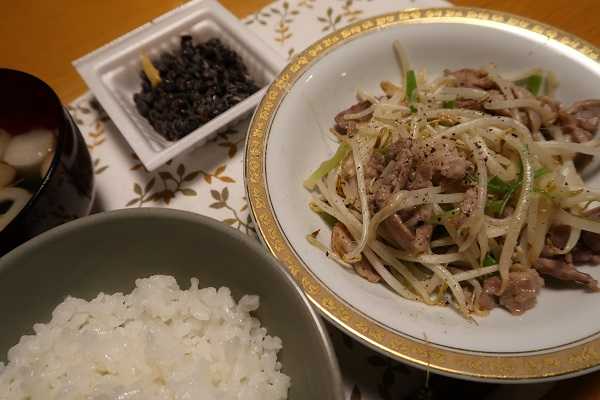 肉モヤシ炒めぺろり &・・・黒豆納豆も忘れずに
