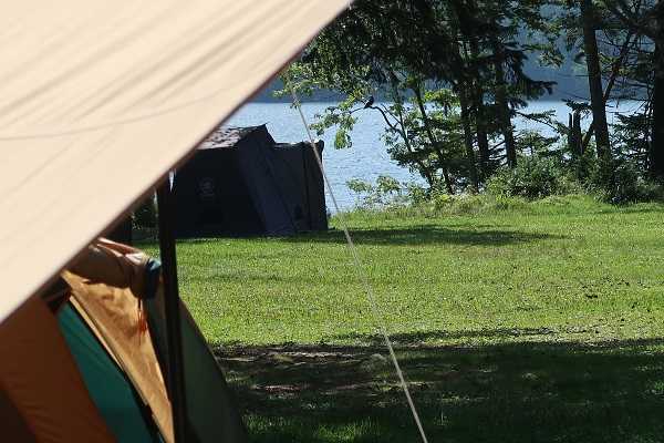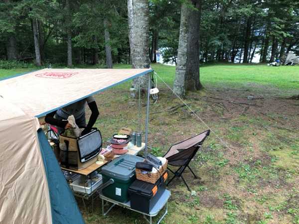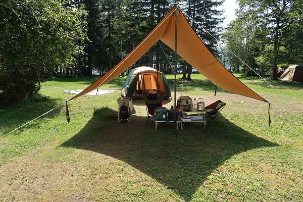 思い切りタープの中に