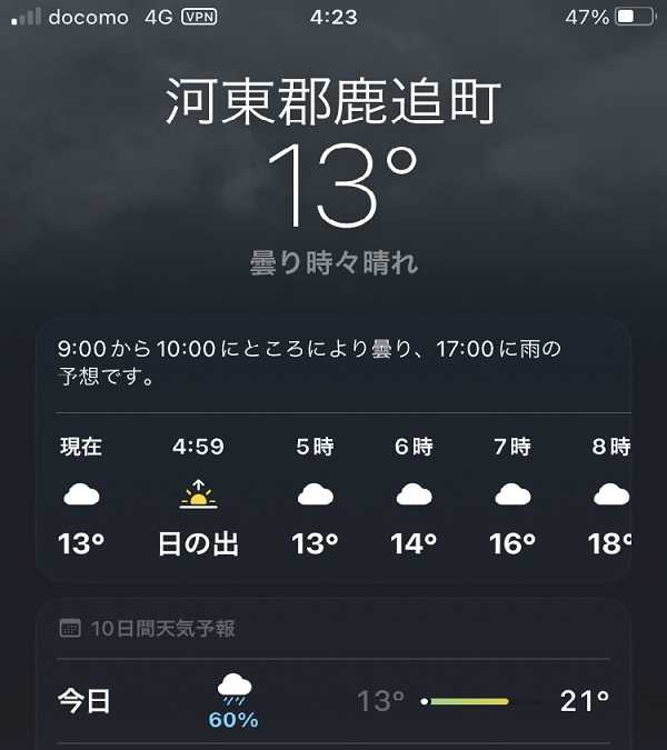 予報が変わってました(台風ってのもあったようで?) 13℃ねぇ~ヾ(≧▽≦)ノ