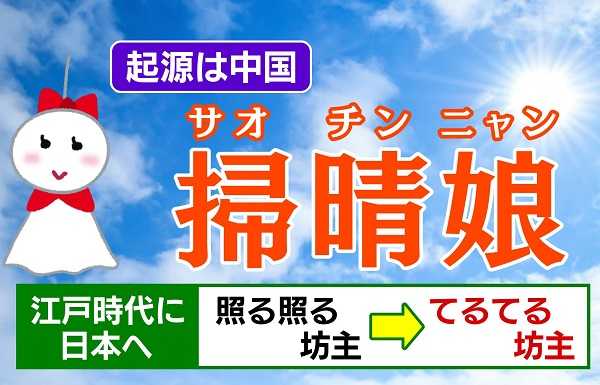 さて、日本では天候の回復をお祈りするのは僧侶の役目だったため、女の子の人形ではなく僧侶の人形となり、人形の頭を「坊主」にし、「てるてる坊主」になったのではないかという言い伝えです。