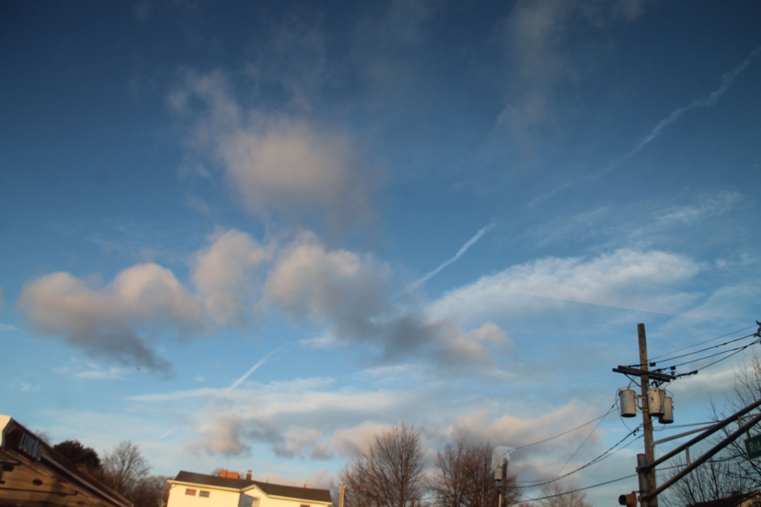本日1月30日、ここ、アメリカ合衆国NJ州では、午後から、雪が降り出し⁂そのうちに猛吹雪になった。3時半頃だろうか、ふっと窓を見ると❆。(3:30pm)細かい雪が風に飛ばされている。これって、中西部の大寒波の煽り?外に出る気はしないので、ベランダのドアは閉めたまま写真を撮った。この分だともしかして、積もるかも・・・。ほんのちょっとの間に、道路にも積もり始めた。そのうちに、ベランダにも積もり始めて、ベランダの壁さえ見えないくらいな吹雪になってきた。強風と雪で、ちょっと怖いくらいだった。あっという間に、道路も屋根もカバーされた。真ん前の家しか見えない。全くのモノトーン風景に早変わり。こんなのが、一晩中続いたら、シカゴみたいに北極より寒くなっちゃう?所が幸運なことに、暫くすると、風は相変わらず強いが・・・景色が見えてきた。色が戻った。雪は止んだ。さっき、何も見えなかった遠くの景色も見える。ホッと胸をなぜ下す。と思う間に、南側のスタジオの窓から薄日が差し始めた!!!車が通るから、道路の雪もほとんどない。さっきの猛吹雪は夢?と言う顔をしている。夕方には、お日様も顔を出して夕焼けさえも始まった。あの猛吹雪からは、到底想像出来ない素敵な夕日。優しい青空に浮かぶ、優しい夕焼け雲。日没の真上の雲は、黄金に輝いて。何事もなかった様に、悠々と青空を闊歩する夕焼雲。(5:30pm)本当に華麗なる夕焼け☁☁ショーを有り難う。5:40pm。真っ青な空とピンクに燃える地平線。静かな夕暮時。激動の一日?泣いて笑って疝気の薬だって。たった二時間かそこらでこれだけのショーを見せてもらえるとは。でも、風は音を立て、さっきより強く激しく吹いている。今夜は、-15℃以下になるとか。大雪にならなくて感謝。今日、自分の所は免れたからと言いて、地球規模で起こっている気候異変は、🌎上に住む人みんなの課題だ。寒波、大洪水、旱魃。地球の問題として地球上に住む一人一人の意識を向けていかなければ!!アメリカのおバカさんは、この寒さだ、気候温暖化は何処え行ったんだ!とのたまっているとか。開いた口もふさがらない。美しい沖縄の海の埋め立て然り。原発問題、核兵器問題然り。自然エネルギーへの切り替え然り。まず意識を向ける。小さなことでも、発言する。そして、自分に出来ることを行動に移す。その気になれば、出来ることを。問題が大きすぎるとか、私には関係ないとか。無知無関心無責任から脱却しよう。自分の家なら綺麗にするが・・・。でも、地球って、自分の家なんだよ。関東も雪とか、お気をつけて過ごしてね❢