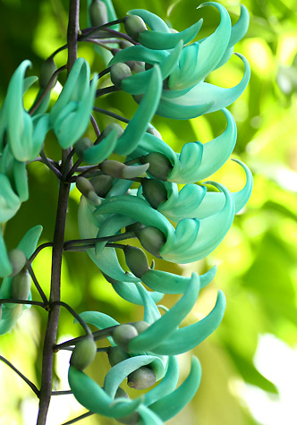 宇都宮も昨日、ソメイヨシノの開花宣言が出されました。 いよいよサクラに季節がきましたね。。。 また一方では、この花の話題にもなります。 「ヒスイカズラ(翡翠葛)」。 漢字で書くとわかりやすいと思います。 花の色が宝石の翡翠に似ていることから名づけられました。 マメ科のつる性の木で、フィリピン諸島の限られたところでしか 見られないそうです。 神秘的で独特の花色ですが、「虫たちに目立たないのでは?」と 思っていたら、虫ではなくオオコウモリが受粉にひと役かっているようです。 そうだったら納得ですね。 ちなみに、鳥のカワセミもヒスイと呼ぶそうです。 そういわれれば、背中の羽の色がそういう色していますね・・・ ところで、この写真は岩舟町の「とちぎ花センター」さんで撮りました。 もうしばらく見れそうです。