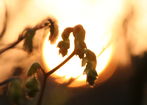 高知県では、もうソメイヨシノが咲いたとのこと。 こちらでは、やっとサンシュウの花が咲きはじめたところです。 やっぱり、昨年より遅い気がします。 牧野富太郎先生は、多くの植物たちが冬の眠りから覚めないうちに 葉よりも先に、線香花火のように黄色い花を咲かせるので、 「春黄金花(ハルコガネバナ)」と名づけたそうです。 また、秋に赤い実をつけることから「アキサンゴ」とも名づけたそうです。 私たちは勝手に「昨年より遅い。」などと言っていますが、 誰よりも春を待ち望んでいるのは、サンシュウ本人(?)なのかも しれませんね。(笑) ★実の写真は昨年秋に撮ったものです。