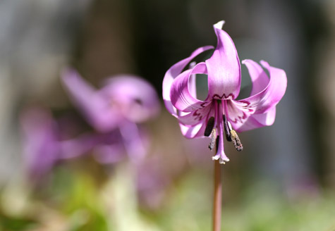 カタクリの花が咲きました。 佐野市のほうでは満開をむかえましたが、 矢板市や那珂川(旧小川)町では やっと開いたところです。 この球根から片栗粉がとれたので、こう名づけられ、 どうやらこの植物は氷河期の忘れもののようです。 どうりで、どちらかというと北斜面に多く、気温が高い夏には 土中深く、しっかりと休眠してますものね・・・ 生きる「すべ」をしっかり持ったカタクリ君には 脱帽です。(笑)