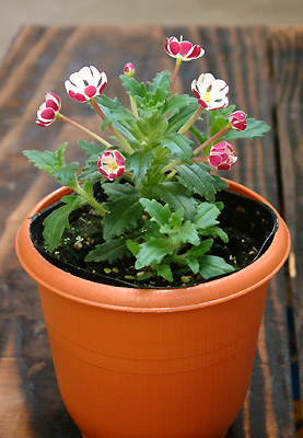 「夜間飛香」の花が咲きました。 花の直径が1.5cm位のかわいい花です。 ゴマノハグサ科で、ナイトフロックスともいわれているようです。 つぼみはワインレッド、昼間は半開きに真っ白な花をのぞかせます。 夜になると甘い香りを発し、夜中が香りのピ-クになります。 昼間は匂わない不思議な植物です。 この花のかわいさに、思わず惹かれてしまいます。 そうそう、まだないしょのお話です。(笑) 4月10日のメルマガで発表しますね。