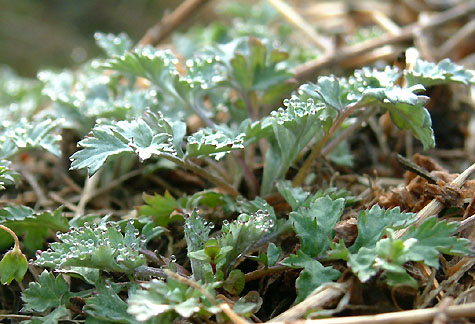 オウレン(黄連)の花が咲きました! この花も早い時期に咲きますよね。 キンポウゲ科の植物で花は小さくてかわいいのですが、根はめっぽう苦い。 ご存知、健胃・整腸の薬草といわれていますものね。 足もとをよく見ないと踏まれてしまいそうですが、 冬の枯れ葉の中から小雪を散りばめたように咲く姿には、 元気をもらったような気がします。