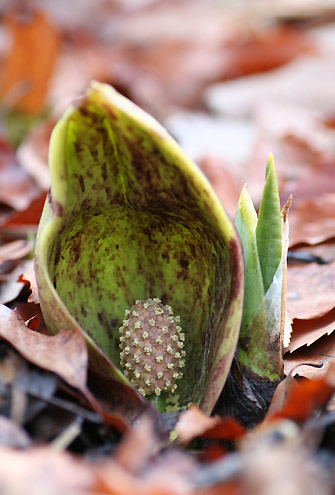 ザゼンソウの花が咲きました。 お坊さんが黒頭巾や法衣をかぶって座禅を組んでいる姿に 似ているので、名づけられました。「ダルマソウ」ともいわれているようです。 ミズバショウより早く咲き、やや乾いた湿地に生えています。 たまたま、仲よさそうに寄り添って耳もとで何かささやいて いるような花をみつけたので、写真におさめました。ほほえましさを感じます。 花が咲いている時や根にスカンクの○○○のような臭さがあり、 花が終わると多きな葉っぱが出るので、英名は「スカンクキャベツ」と 呼ばれています。 幸い(?)私は花粉症なので、臭いは感じられませんでした。(笑) まれに、苞(ほう)が緑がかったのも見られます。 今日は長靴をはいて歩きました・・・・正解でした。(笑)
