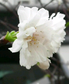 もの悲しそうに、下向き加減で咲いていました。『彼岸桜』 と書いてありました。桜? 今頃咲く種類でしょうか?あいにく曇空で、道ゆく人に気づかれぬままちょっと、かわいそうでした。