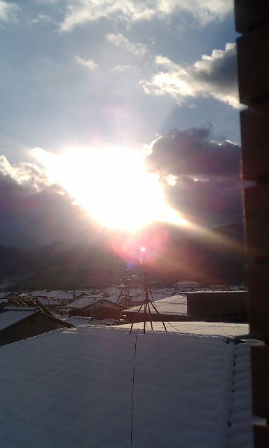 新年明けましておめでとうございます。 今年も宜しくお願い致します。 長野市は年越しの雪が降り続き、雪の元旦となりました。 朝4時頃といわれた部分月食も、初日の出も雪に隠れましたが、 とても明るい新しい年の幕開けとなりました。 日の出の時刻に太陽さんが昇る方向へ、拍手を打ちご挨拶。 アマテラスオオミカミ様 奏上すると、とても厳かな気持ちになりました。 そして、主人と土地神様へ新年のご挨拶へ。 そのまま、15センチほど積もった道路や駐車場の雪かき。 今年の初仕事です。 そうすると雪の間から少し太陽さんがのぞいてくれました。 長野の初日の出。 とてもたくさんの光が降りている、2010年元旦。 素晴しい一年の幕開けですね。にほんブログ村素敵な一日をお過ごしください今日もご覧いただき、ありがとうございます。