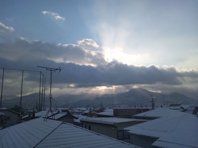 仕事復帰まで一週間をきりました。手術前は目だった体調の悪さを感じなかったけど、手術入院してからめっきり体力が落ちて。入院前は、ちょっと長くお休みし過ぎかな?と思っていたのだけど、今週いっぱいお休みお願いしておいて良かった。昨日から出勤していたら、使い物にならなかったな。朝からの雪が止んで、日が射してきたので一念奮起。会社の同僚に自分の仕事をお願いしたので、御礼を兼ねてお菓子を長野の駅前に買いに行ったのだけど。。。 途中から心臓がバクバク。 最近疲れがピークになると現れる症状。 胸は焼けるように痛くなるし、呼吸は浅くなるし。 若しかしたら副腎を取っちゃった副作用かもしれないな。 う~~~ん。 こんなことで来週から仕事になるかしら??? なんて身体を宥めながら無事買い物終了。 帰りは吹雪いていましたが、自宅に帰ると太陽さんがまた燦々燦々。 ホッとする。 これが自宅にいる醍醐味。 今のうちに味わっとかなくちゃ。 それにしても今日の太陽さん大きいね。 何はともあれ嬉しい。 太陽さんありがとう。