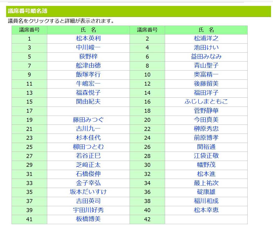 川口市議会 議席番号順名簿