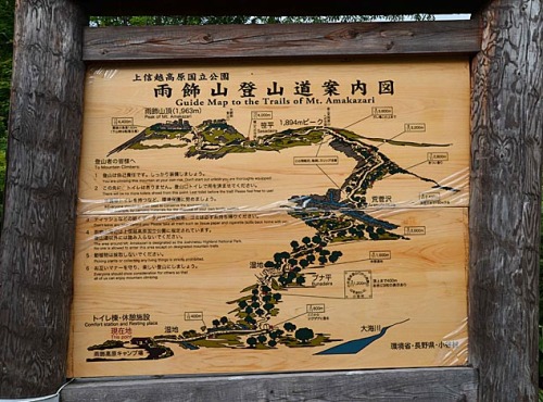 23日、雨飾山に登る。天気が良ければ、山頂から日本海も見えるという山。一緒に行きたいという友人が出て、その時点で山頂はあきらめ、最悪、肩の笹平までを目標とした。10年以上前に登ってはいるが、私の記憶は日々に薄れ・・・。だた急登の多い結構きつい山ということのみ残っている。10月4日に行われる今年3回目(今年最後)の村民登山の目標の山に決まったので、果たして自分が登れるのか、お試し登山の意味合いもあって。6時に家を出発。登山口から歩き出したのは7時半。最近人気の山の一つであるためか、駐車場は満杯、しかも県外車が多い。コース全体が400mずつ11等分されていて、良い目印になったが、判りにくい場所にあったのか、いくつかは登下山のどちらでも見つけられなかった。結局笹平で正午近くなってしまったので、11分の9と10の中間まで行き、あと600mを残して山頂は断念!予定通りとなった。霧雨と霧の天気で、笹平手前で風が吹き、一瞬青空と妙高・焼山方面がみえたが、またすぐに白い世界に戻った。でも、花々はしっとりと露に濡れどこまでも鮮やかに、また、木々の葉は新緑・深緑とは違った柔らかい緑が光っていた。山として良い山だが、ルートが乾いていないと、結構下りが滑りそうな山だ。この週末も、あちこちで、捻挫遭難(?)があって救助されている。気をつけねば。登山道入口にある看板荒菅沢に残る雪渓 上部にもあり融けることがあるのだろうか晴れていればここから大岸壁が見えるはずだけど・・笹平手前で一瞬見えた青空と焼山方面11分の9.5で引き返す下りの岩場は慎重に