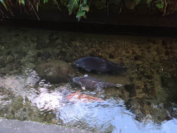 いがわの小径は、郡上八幡旧庁舎記念館の横を流れる用水路で、鯉がたくさん泳いでます。